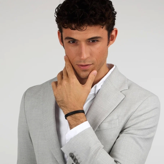 Браслет изготовлен из мягкой и эластичной кожи теленка, которая приятна на ощупь и обеспечивает комфортное ношение в течение всего дня. Вставки из нержавеющей стали придают браслету прочность и долговечность, а также добавляют современный акцент в его дизайн.